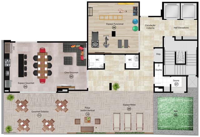 São 80 apartamentos, 52 unidades com 1 quarto e 28 unidades com 2 quartos, 2 elevadores, 1 ou 2 vagas de garagem, lazer montado e decorado. 4 lojas no térreo.