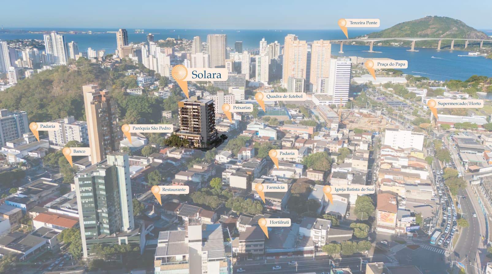 Tudo ao seu alcance, no CORAÇÃO DA PRAIA DO SUÁ. Rua General Câmara, 192, CEP 29052-260. Esquina com a Rua Almirante Tamandaré, Praia do Sua, Vitória ES.